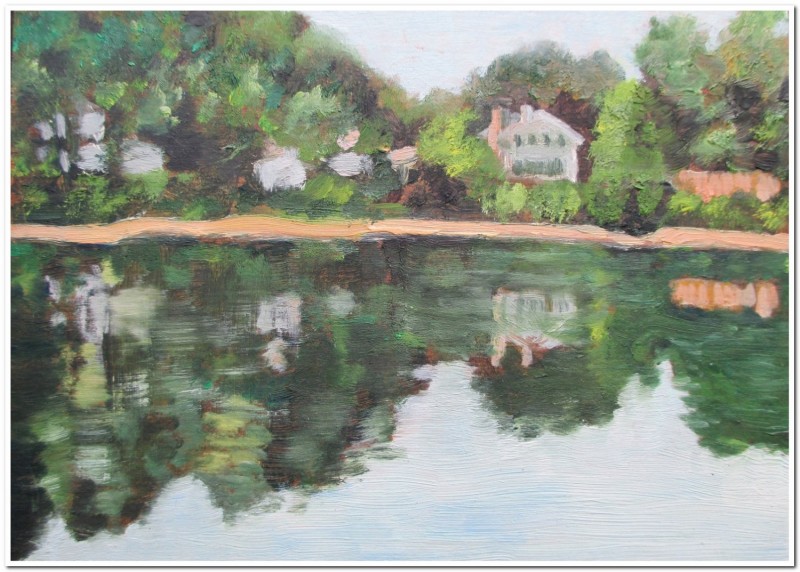 West Across the River. Oil on MDF (medium density fiberboard), 5" x 7," mounted on small box 2 1/4" D available